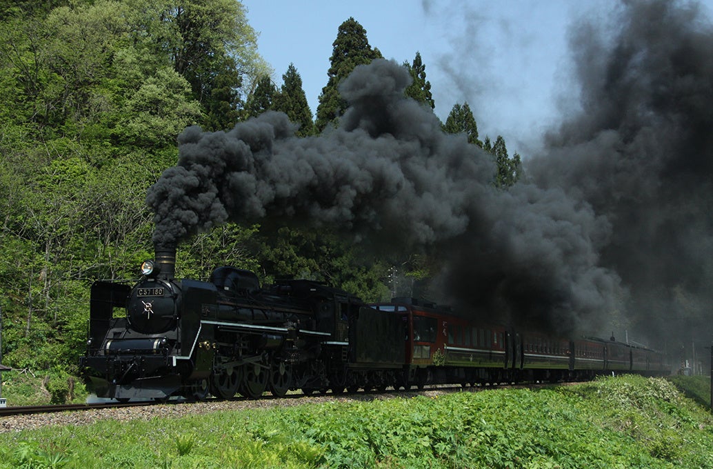 ・阿賀野川沿いを走る人気の「SLばんえつ物語」と山間のどかな車窓が広がる「只見線」に乗