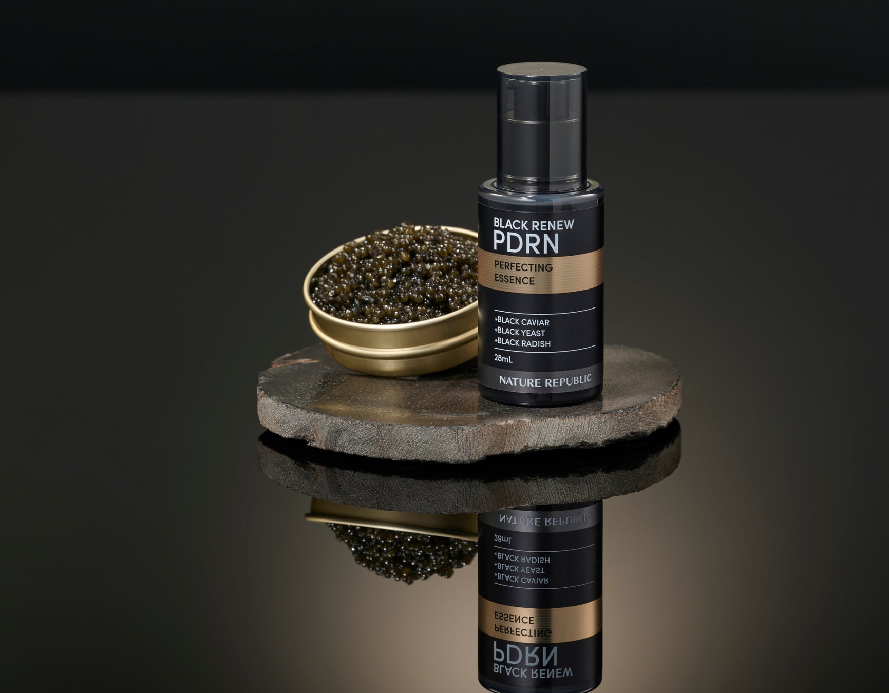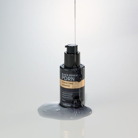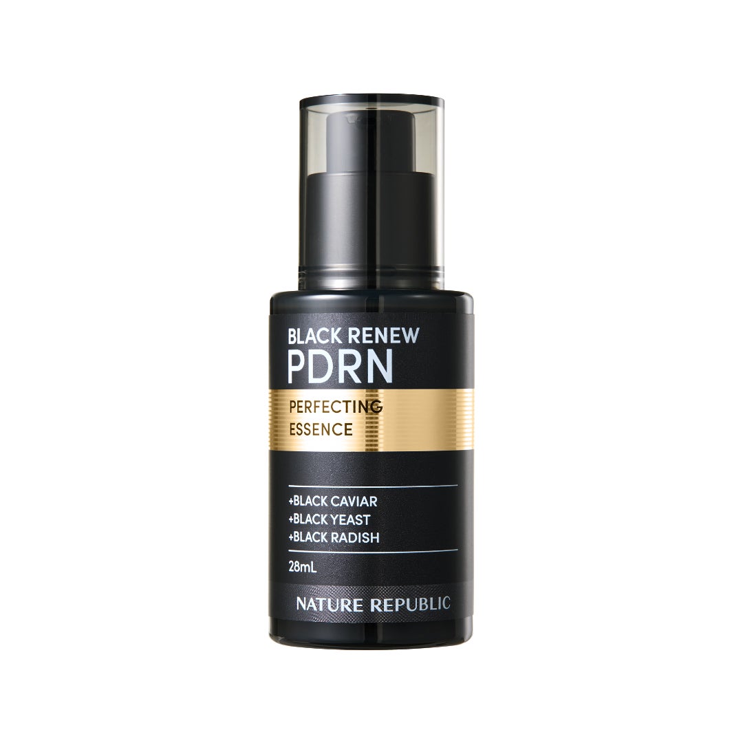 ブラックPDRNシリーズから新しく誕生した「ブラックPDRN 美容液」にはキャビア、黒大根、黒酵母から抽出したPDRN complexを100,000ppm(10%)配合。さらにヒアルロン酸、コエンザイムQ10、ペプチド、ナイアシンアミド、コラーゲン、セラミドといったネイチャーリパブリック独自の処方でエイジングケア&ハリ弾力ケアに特化した美容液に仕上げました。
