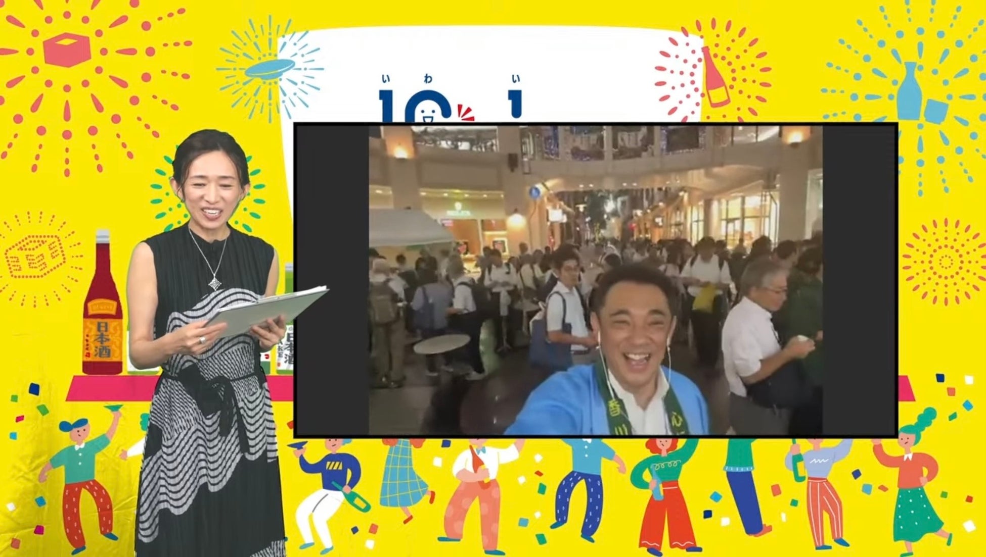 今年もより多くの方にご参加いただくため、鏡開きや一斉乾杯のカウントダウン、声優で日本酒ラバーの茅野さんによるトークイベントなど幅広いトピックスを交えつつ、離れた場所にいても日本酒で同じ時間に乾杯することで人と人との心がつながる楽しさを感じていただくイベントをオンラインで開催しました。日本時間19時ジャストに行われた恒例の一斉乾杯の前後では、愛媛県や香川県、宮城県など国内各地のライブ会場と繋げたほか、シンガポールやマレーシア、台湾、香港といった同時刻参加可能な東南アジア各国の会場との中継も行われるなど、国籍を問わず、多くの日本酒ファンの方に参加いただきました。