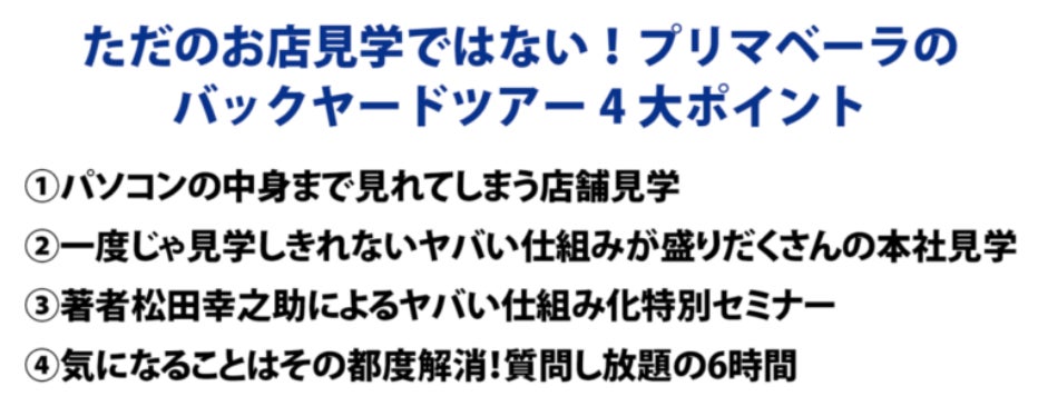 「ヤバい仕組み化プリマベーラバックヤードツアー」:https://x.gd/LnqjC