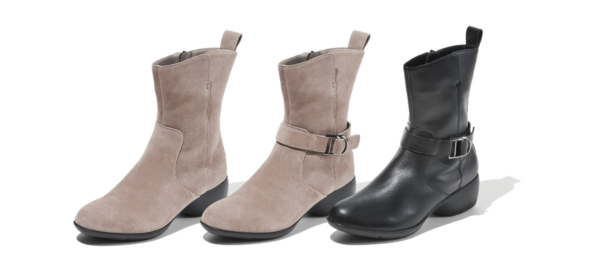 ブーツを履いた時の足の動きを研究・開発し、とことん歩ける<インフィニティソール>を採用した「サイドゴアブーツ」と新たに「ベルテッドミドルブーツ」を発売