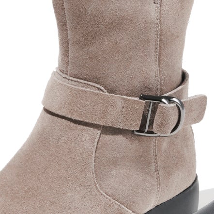 - シーズントレンドのミドル丈に、アッパーは本革を使用したシャープなシルエットのブーツです。履き口やベルトはあえて切りっぱなしの仕様にすることで、レザーの良さを表に出し、厚みの出ないすっきりとした仕上がりを目指しました。