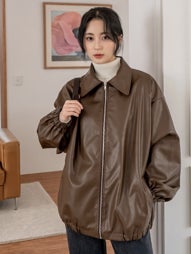 商品名:Dazy-Less ドロップショルダー スラントポケット PU ジャケット