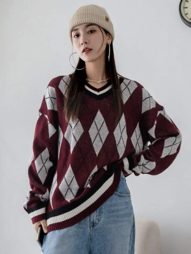 商品名:DAZY アーガイルパターン ドロップショルダー オーバーサイズセーター