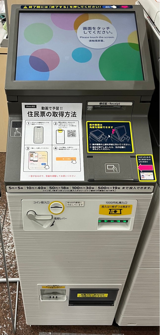 都城市役所内にある証明書発行機を使用して住民票の写しのコンビニ交付を使用する人