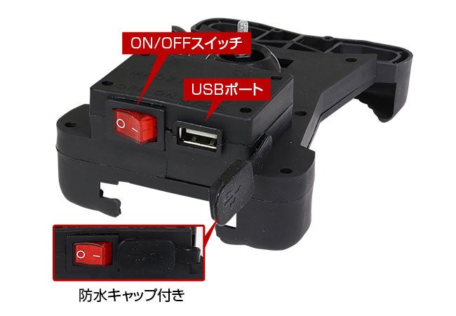 バイクから電源を取得することでホルダー底面のUSBポートからスマートフォンの充電も可能です。