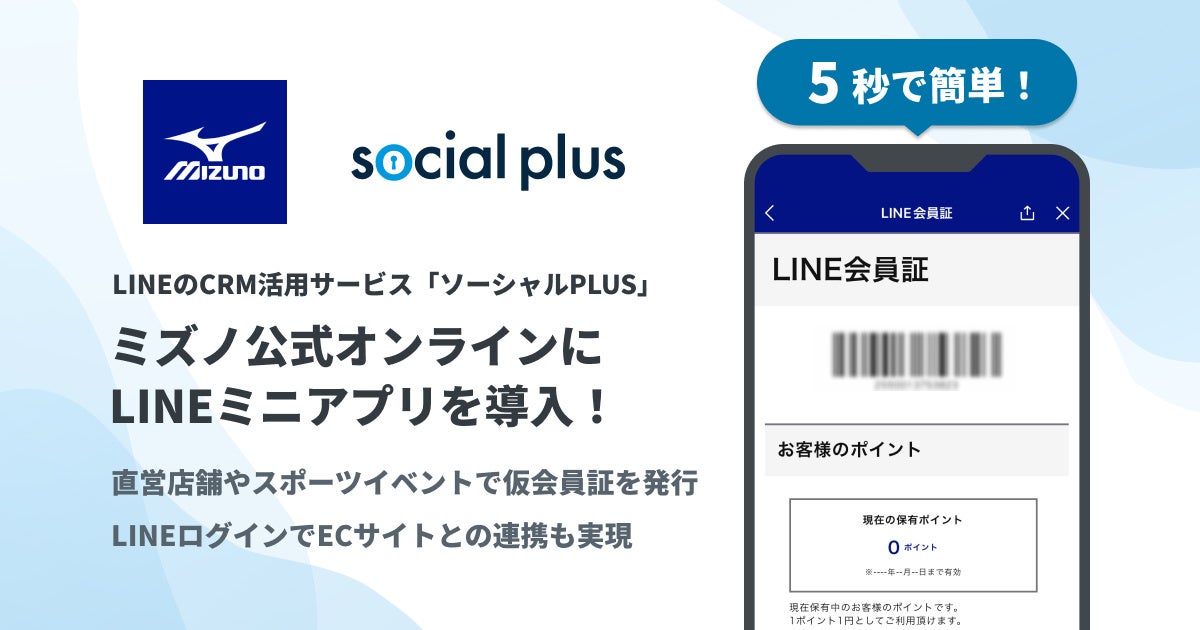 仮会員証を5秒で発行!ミズノのLINEミニアプリ導入をソーシャルPLUSが支援、登録フローの簡略化とCRM最適化のための情報連携を両立