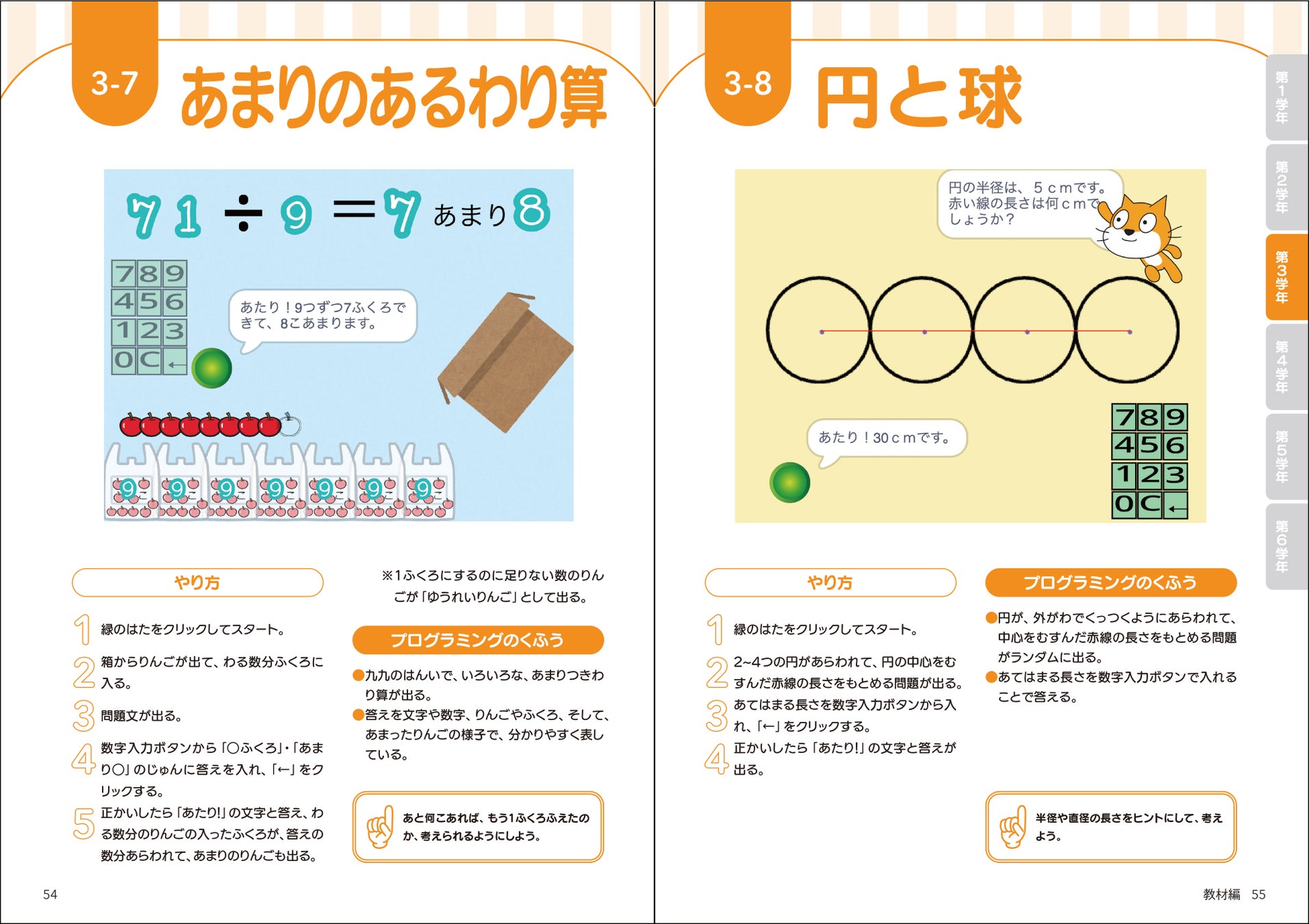 『スクラッチで算数マスター!』は、算数の学習・指導を通してプログラミングにも親しめる画期的な教材&指導テキストです。