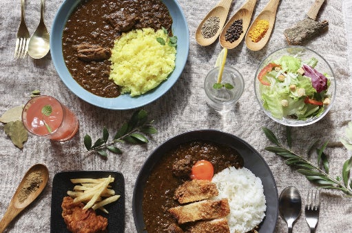 メインのカレーには企業秘密のフルーツを使い、クリアな酸味とスパイスの辛さが絶妙に調和した他には真似できない逸品です。 数十種類のスパイスをカレーだけでなくカクテルにも応用し、香りと味わいの奥深さを追求したメニューをラインナップします。