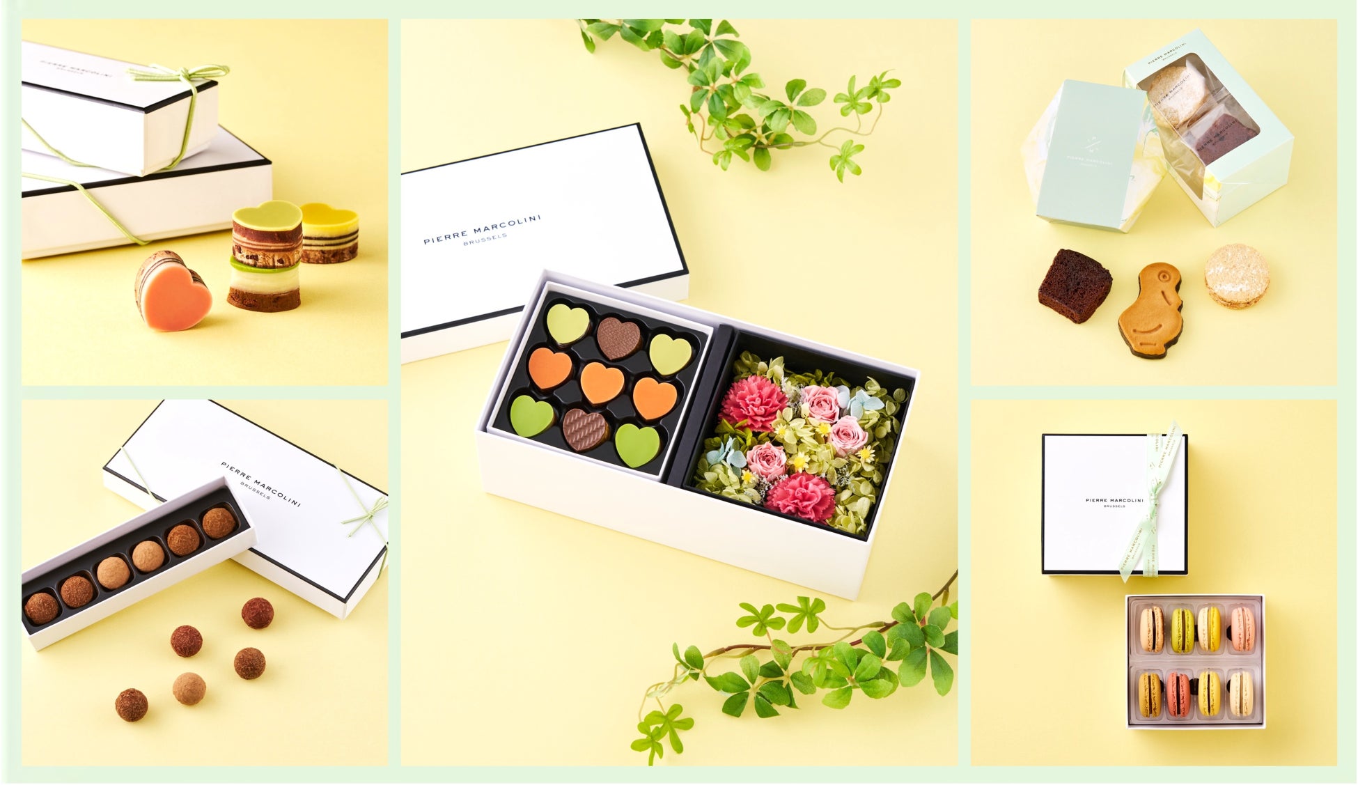この春のテーマは『Réveil du printemps〜輝く春の訪れ』。爽やかなミントグリーンのリボンをあしらったショコラや、プリザーブドフラワーと組み合わせたセットなど、この季節にぴったりの華やかなアイテムが揃っています。