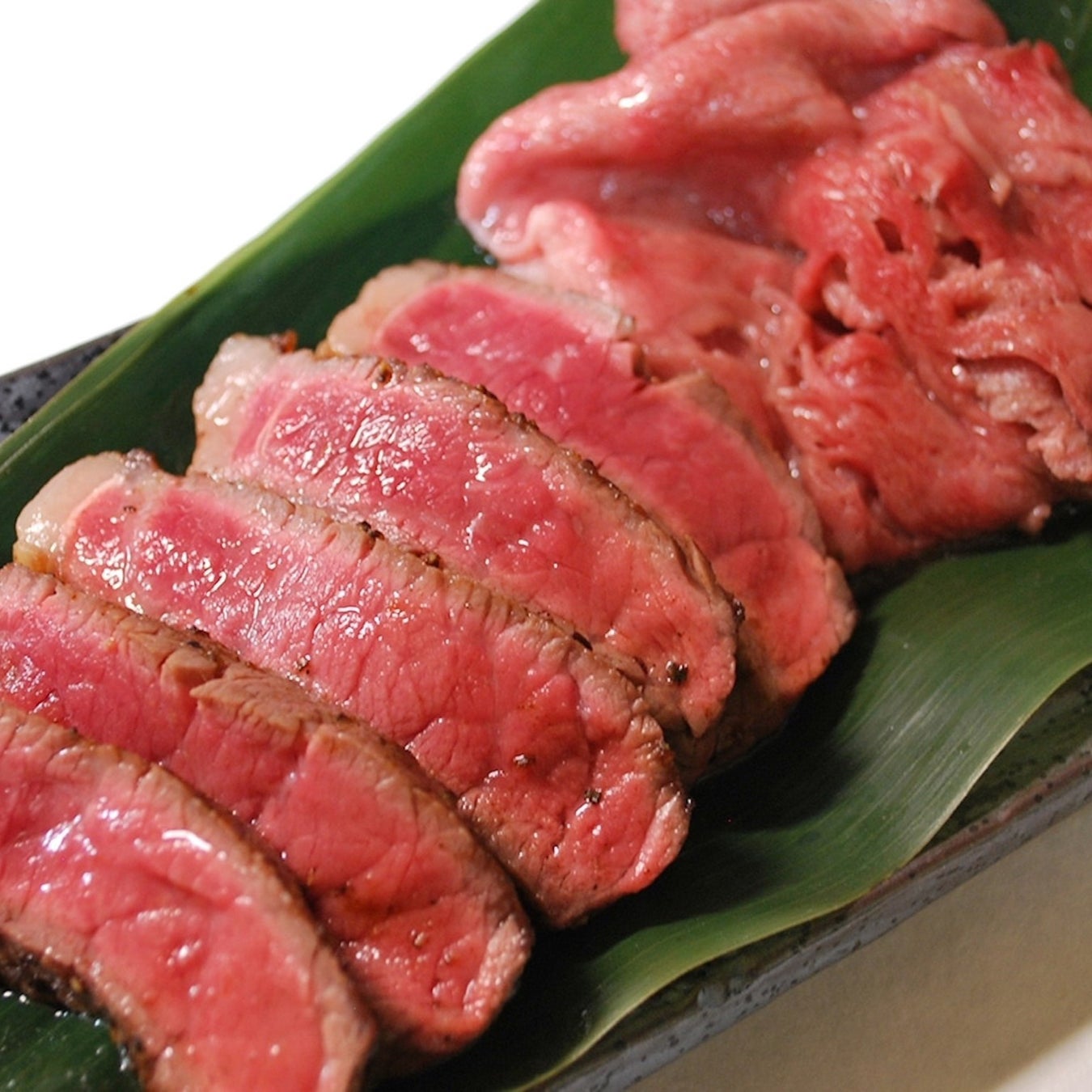 A5ランクの佐賀牛を45日間熟成し厚切りステーキに!口の中に広がる肉汁に感動!小倉発祥の焼きしゃぶは噛まなくても口の中でとろける新食感。最高の和牛を是非ご堪能ください。
