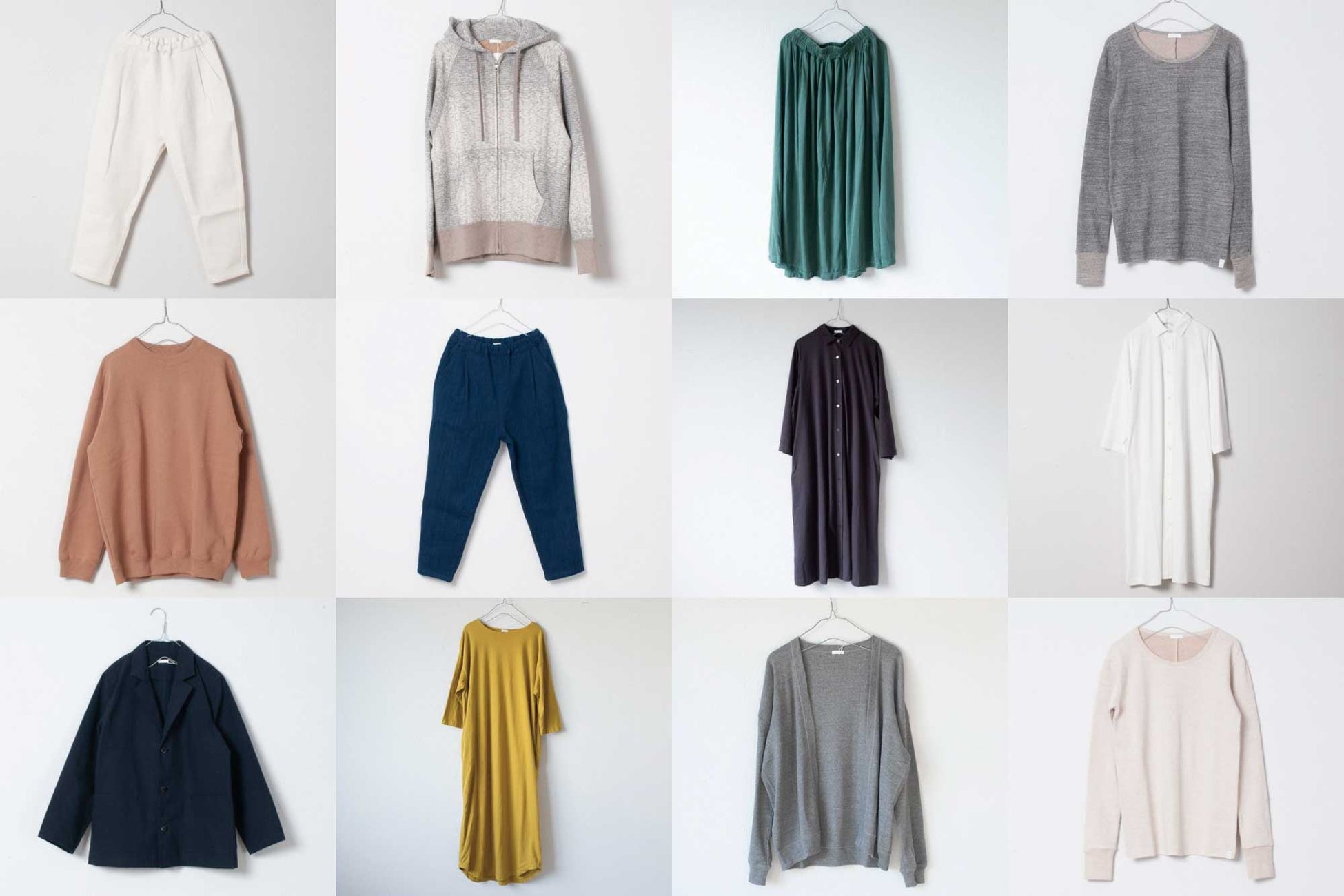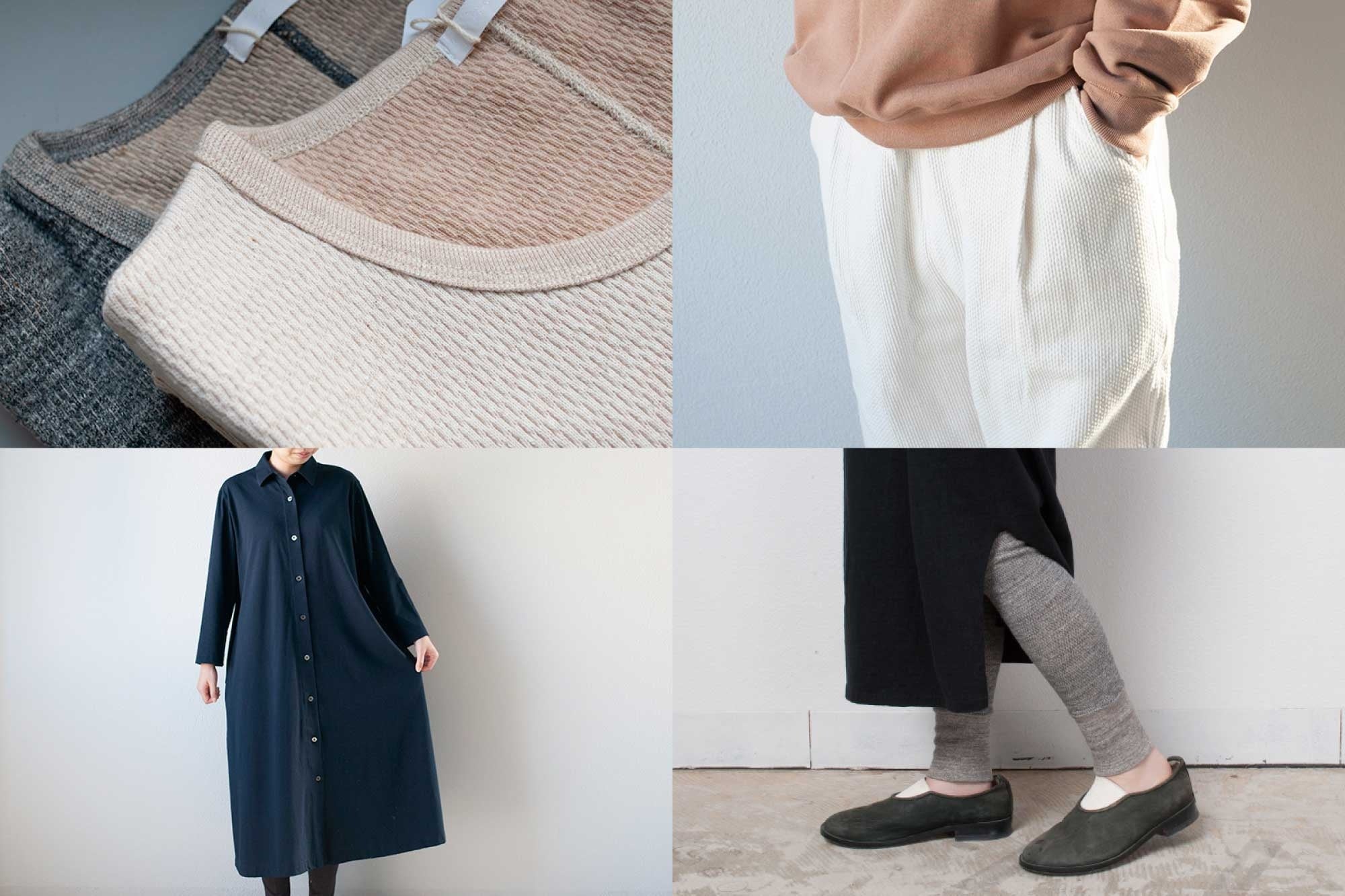 yohakuの服づくりのはじまりとなった「再生」、各地の織物や技術を使った「産直」、変わらず作り続ける「定番」とyohakuの服をいろいろと取り揃えられることになりました。