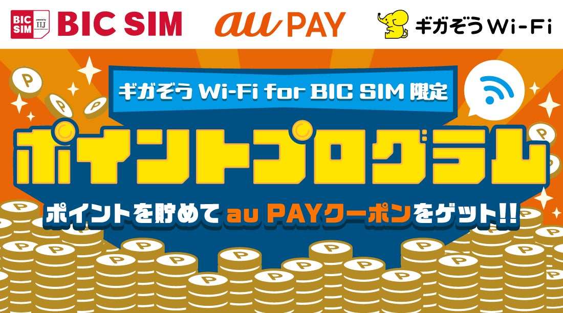 【BIC SIM】ギガぞうWi-Fiの接続でau PAYクーポンがもらえる「ポイントプログラムキャンペーン」を実施
