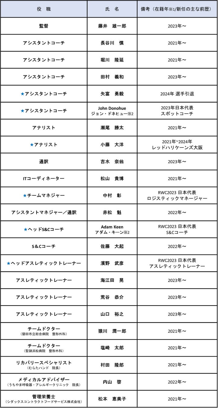 静岡ブルーレヴズ2024-25シーズンのチームスタッフが、以下の通り決定いたしました。