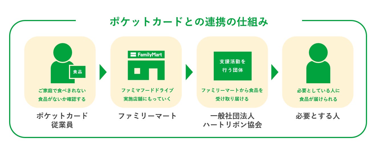 この度、ポケットカード様からお声がけいただき、「ファミマフードドライブ」の取り組みを協同で進めることとなりました。食支援の充実と食品ロス削減に関する新たな連携を実現できたことを大変嬉しく思います。