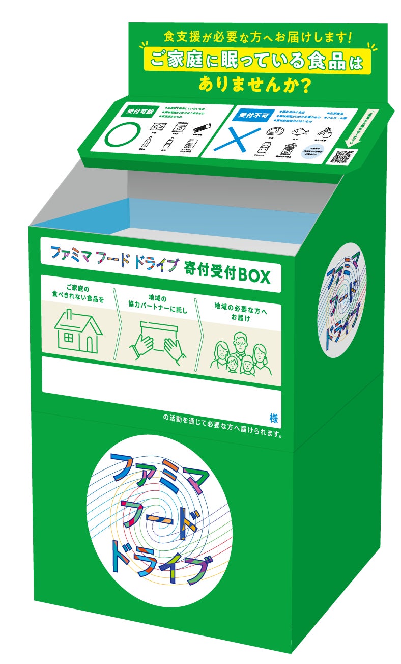 株式会社ファミリーマート(本社:東京都港区、代表取締役社長:細見研介、以下ファミリーマート)とポケットカード株式会社(本社:東京都港区、代表取締役社長:髙垣晴雄、以下ポケットカード)は、国内最大規模のフードドライブのプラットフォームを生かした新たな連携として、年間を通じポケットカード本社内に「ファミマフードドライブ」寄付受付BOXを設置、社内フードドライブ活動を開始し、地域の食支援と食品ロス削減に取り組みます。集まった食品は、ファミリーマートが取り組んでいる「ファミマフードドライブ」実施店舗に持ち込み、食品回収のパートナーである一般社団法人ハートリボン協会(東京都港区、理事長:田中正志、以下ハートリボン)を通じて、地域で食支援が必要な方々へお届けすることをお知らせいたします。