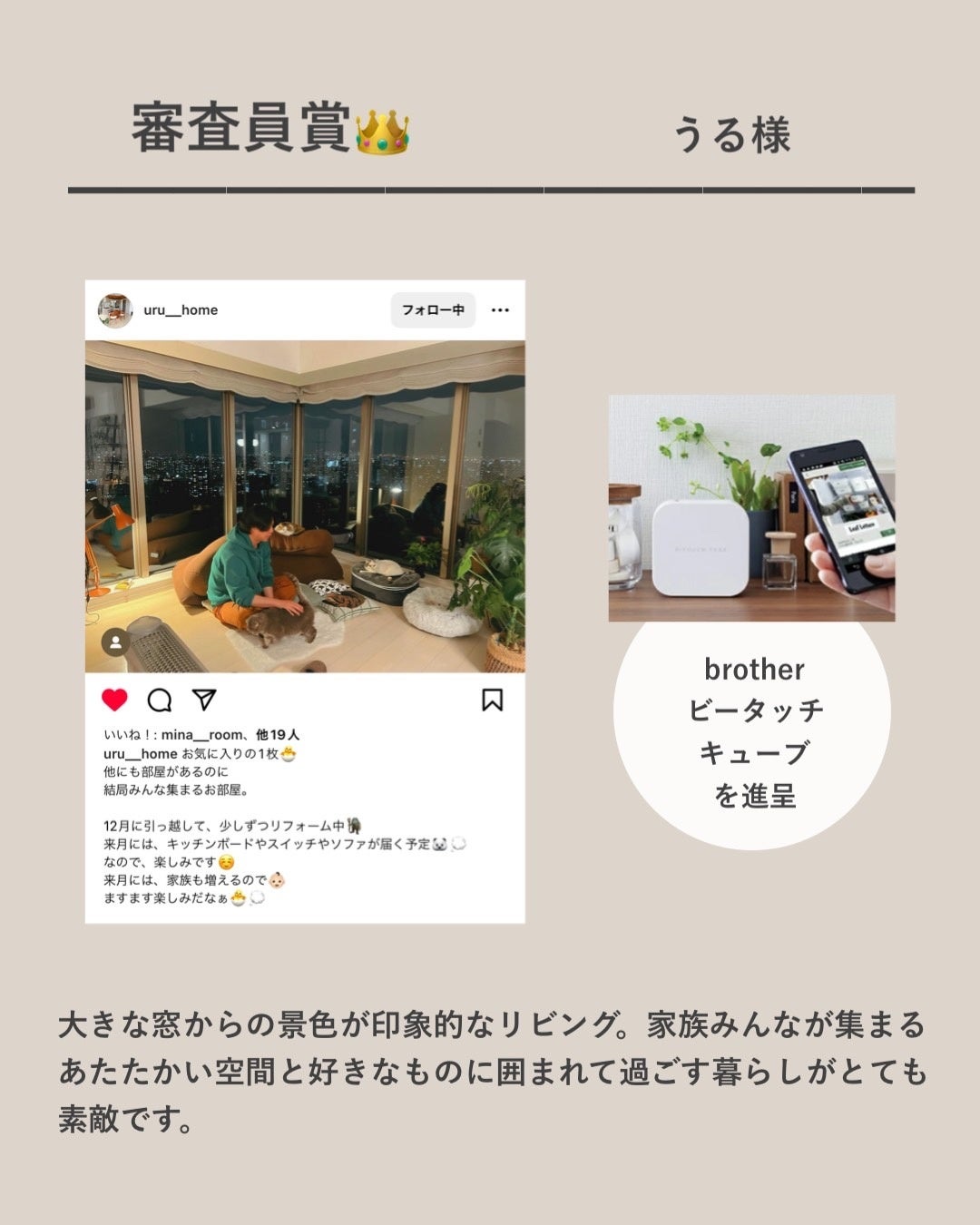 本キャンペーンでは、“趣味に没頭している写真”や“ペットの愛くるしい写真”など、お家の中の何気ない日常から生まれるお気に入りの写真の投稿を募集。Instagramで大人気のラク家事研究家みなさんにも特別審査員として参加していただき、コメントもいただいております。