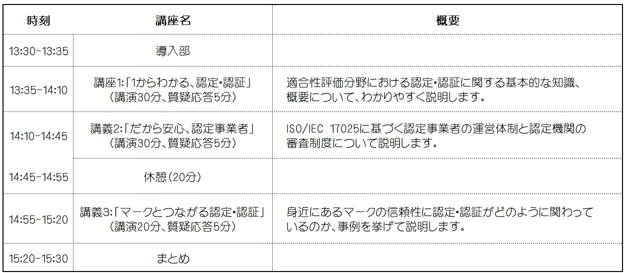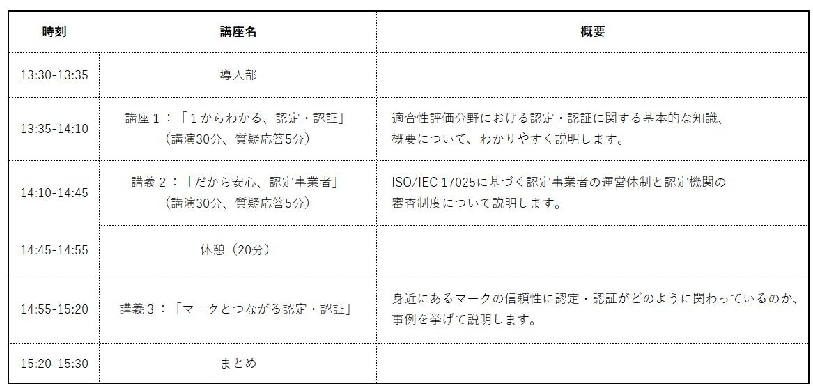 本講座では、知っているようで知らない「認定」「認証」について、専門機関であるNITEから概要を解説するとともに、基盤となる国際規格と認定活動との関係や、身の回りにあるマークと認定・認証との関連について紹介します。