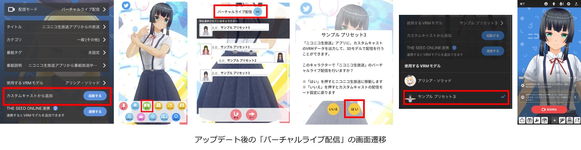 ニコ生アプリ機能「バーチャルライブ配信」「カスタムキャスト」の3Dアバターが無料で使用可能に