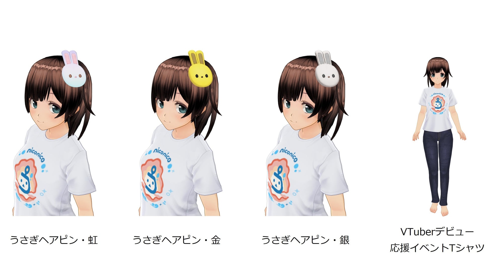 | ■景品 | 【放送者】 ・1位 :カスタムキャスト内アイテム「ヘアピン3色セット」(虹・金・銀)+VRゴーグル ・2位 :カスタムキャスト内アイテム「ヘアピン‐金‐」+「ヘアピン‐銀‐」 ・3位 :カスタムキャスト内アイテム「ヘアピン‐銀‐」 ※1位~3位の賞品は8月下旬に発送予定 ・参加賞:カスタムキャスト内アイテム「VTuberデビュー応援イベントTシャツ」 ※期間中に一度でも対象タグが付いた配信をした放送者にプレゼント ※対象タグ:[カスタムキャスト配信]・[バーチャルキャスト配信] 【視聴者】 ・コメント賞:Amazonギフト券500円分 「スマホでVTuber」タグが付いた番組にコメントした視聴者から抽選で100名にプレゼント ・参加賞:ニコニ広告福引チケット イベントギフトを投げた回数に応じてプレゼント(最大7枚) |
