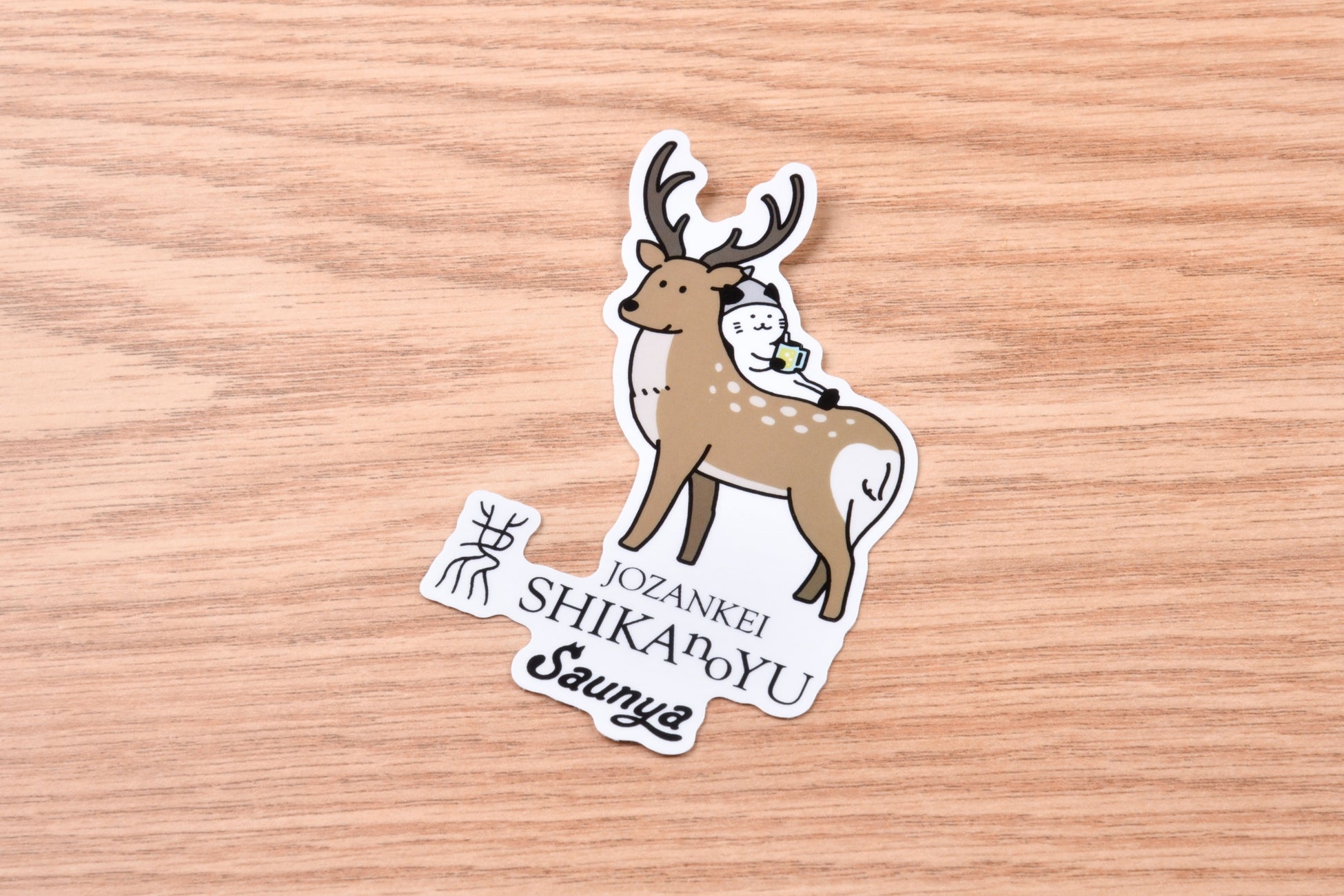 サウナ好きな猫をモチーフにしたサウナブランド『Saunya』。この度、北海道で初めてとなる鹿の湯とのコラボが実現しました。えぞ鹿の背中でSaunyaがオロポを飲む可愛らしいイラストをあしらった、当館だけの特別なサウナグッズ。