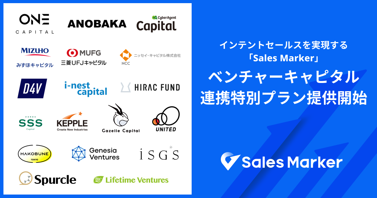 国内初※1インテントセールスSaaS「Sales Marker」、VC22社と提携し「ベンチャーキャピタル連携特別プラン」の提供を開始