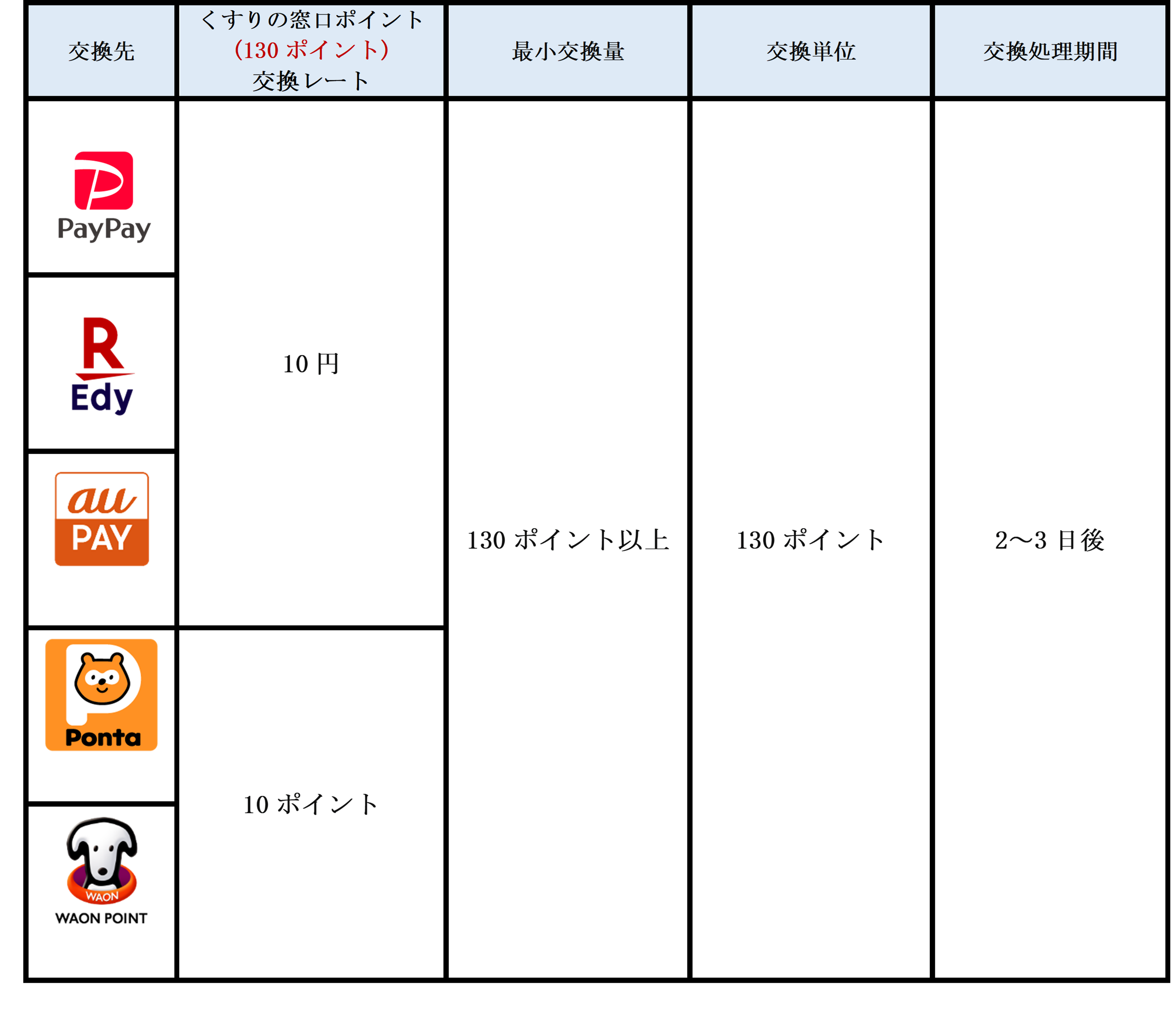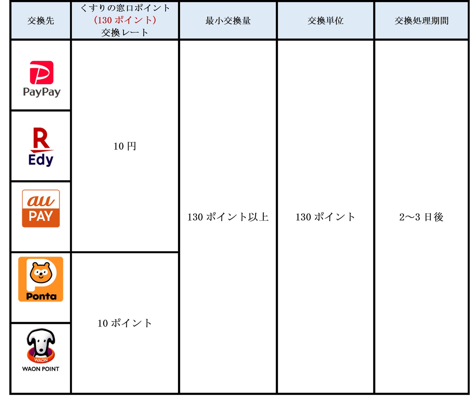 くすりの窓口ポイントは、提携しているポイント交換先とポイント交換できるほか、「取り置きサービス」の決済時にもご利用いただけます。