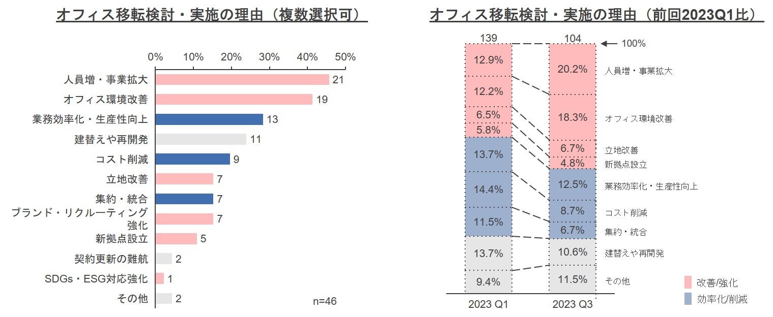 また、「拠点の統廃合」、「人員増減に伴う移転」の割合が増加しており、拠点再編の動きも見られました。