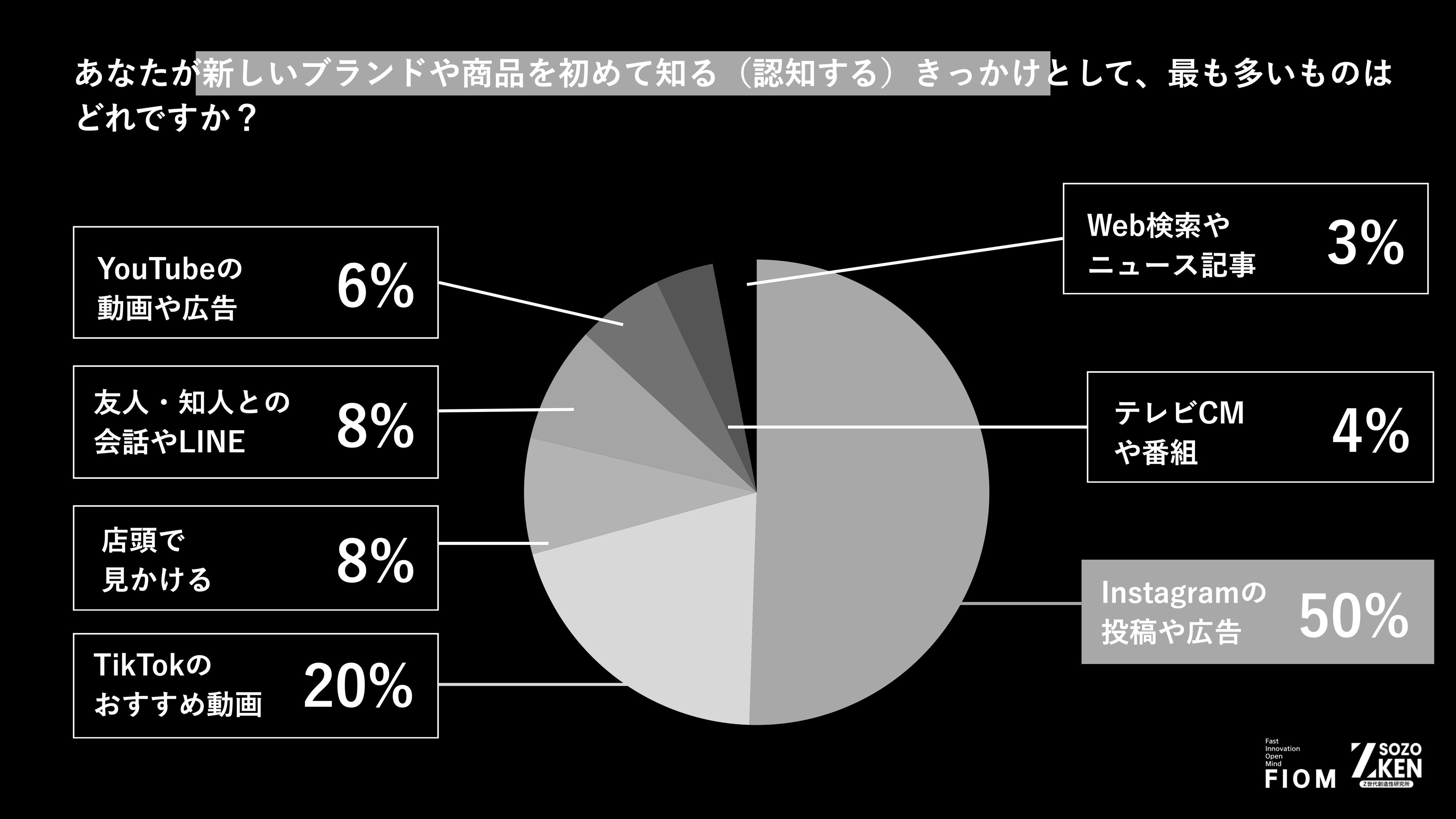 「Web検索」はわずか3%。Z世代の半数(50%)が「Instagram」で新商品を認知。