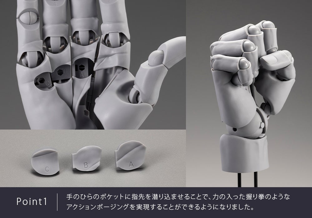 手の作画や技法書で著名な「加々美高浩」氏とコトブキヤのトップ原型師「白髭 創」がタッグを組んで産み出されたハンドモデルは、イラストレーターやマンガ家、アニメーターから大きな支持を得て、累計約10万台出荷を達成したコトブキヤのベストセラーアイテムです。