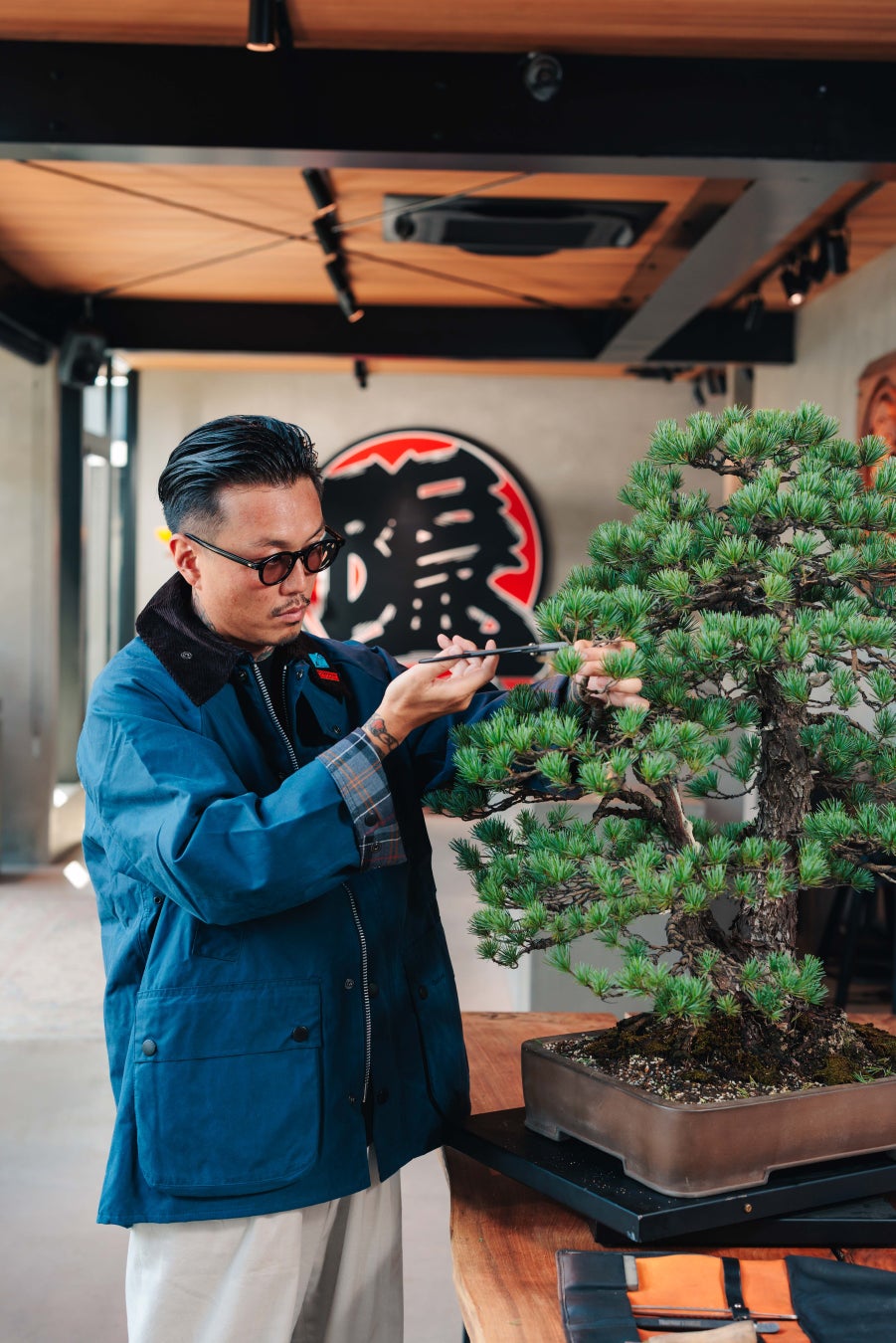 Barbourのタータンと同様に、盆栽もまた“根を張ること”を大切にしながら、時代に合わせて枝を広げていく文化。