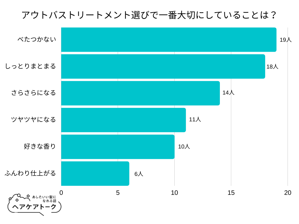 ・髪が非常に乾燥しやすくパサパサになりがちなので、アウトバストリートメントには髪を保湿してパサパサ感を抑えてツヤが出るようにしてほしいから。(10代女性)