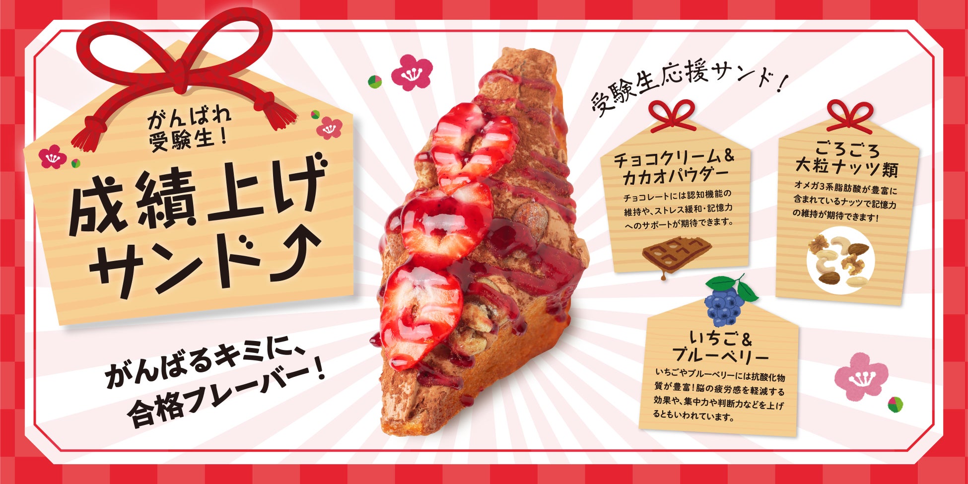 【昨年大反響】受験シーズン恒例!学生応援「成績上げサンド」今年も登場。ブレインフードたっぷりの合格祈願スイーツ!