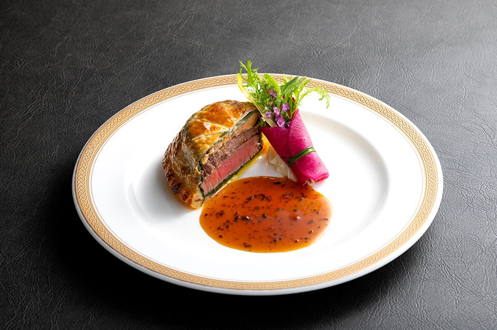 □肉料理 飛騨牛フィレ肉とフォアグラ 牛タンのパイ包み ソースペリグー