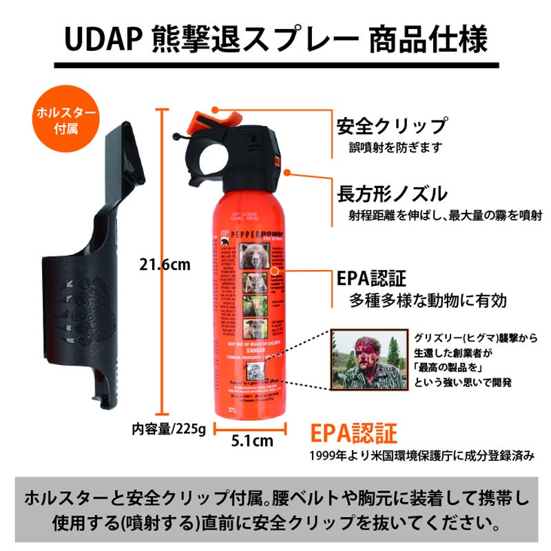 【商品詳細:UDAP 熊撃退スプレー PEPPER POWER】