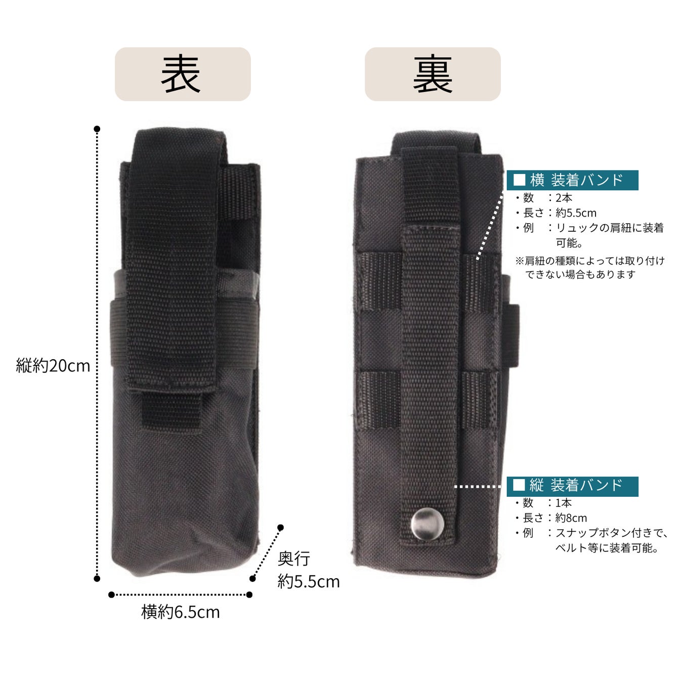あらゆる装備に装着可能: 背面に「縦1本・横2本」のベルトを装備。リュックの肩紐、腰ベルト、農具など、使う場所を選ばず最適な位置にセットできます。