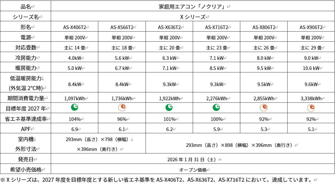 ※2 目標年度2027年度達成率100%クリア。(Xシリーズ18畳用、X、Zシリーズ26・29畳用除く)