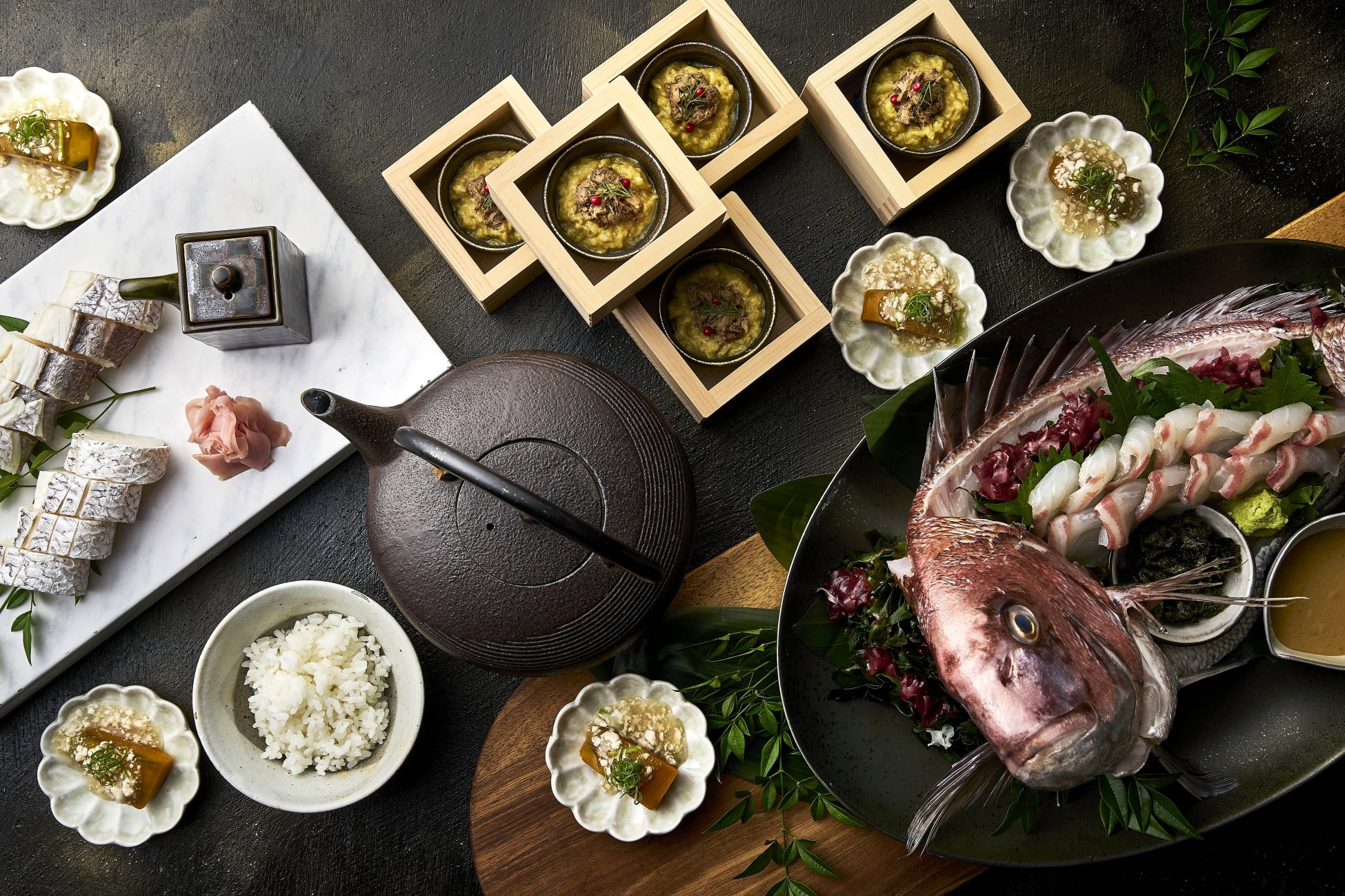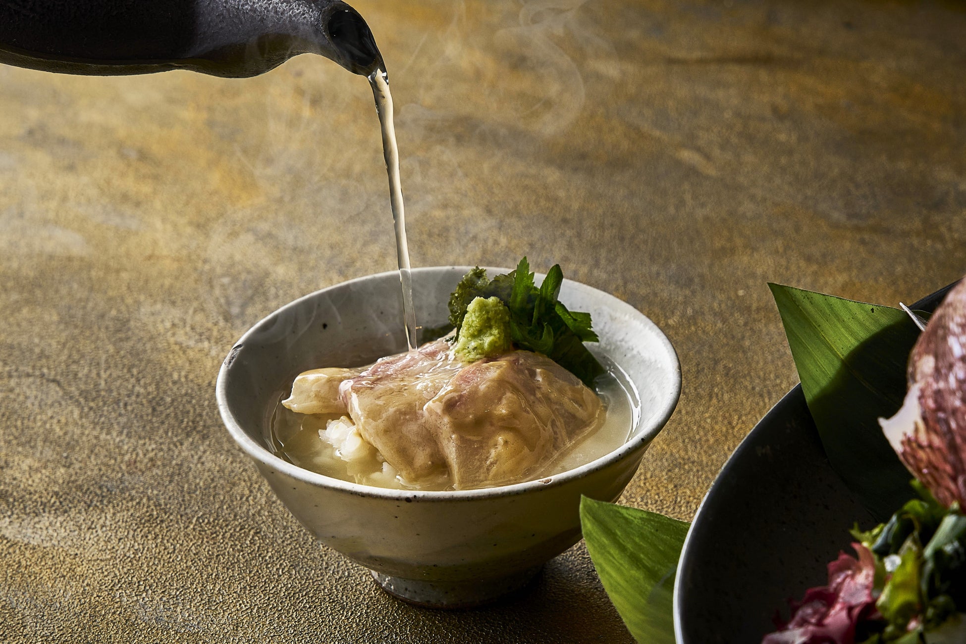 そして「小鯛の笹漬け小袖巻き」や「鱧の天ぷら」に加え、秋の味覚である真鯛を贅沢に使った「鯛茶漬け」がビュッフェに初登場します。脂がのった旬の真鯛を香ばしい胡麻だれとともにご飯にのせ、熱々の出汁を注いで仕上げる一杯は、さらりと食べられるのに、しっかりと旨味が感じられる逸品です。