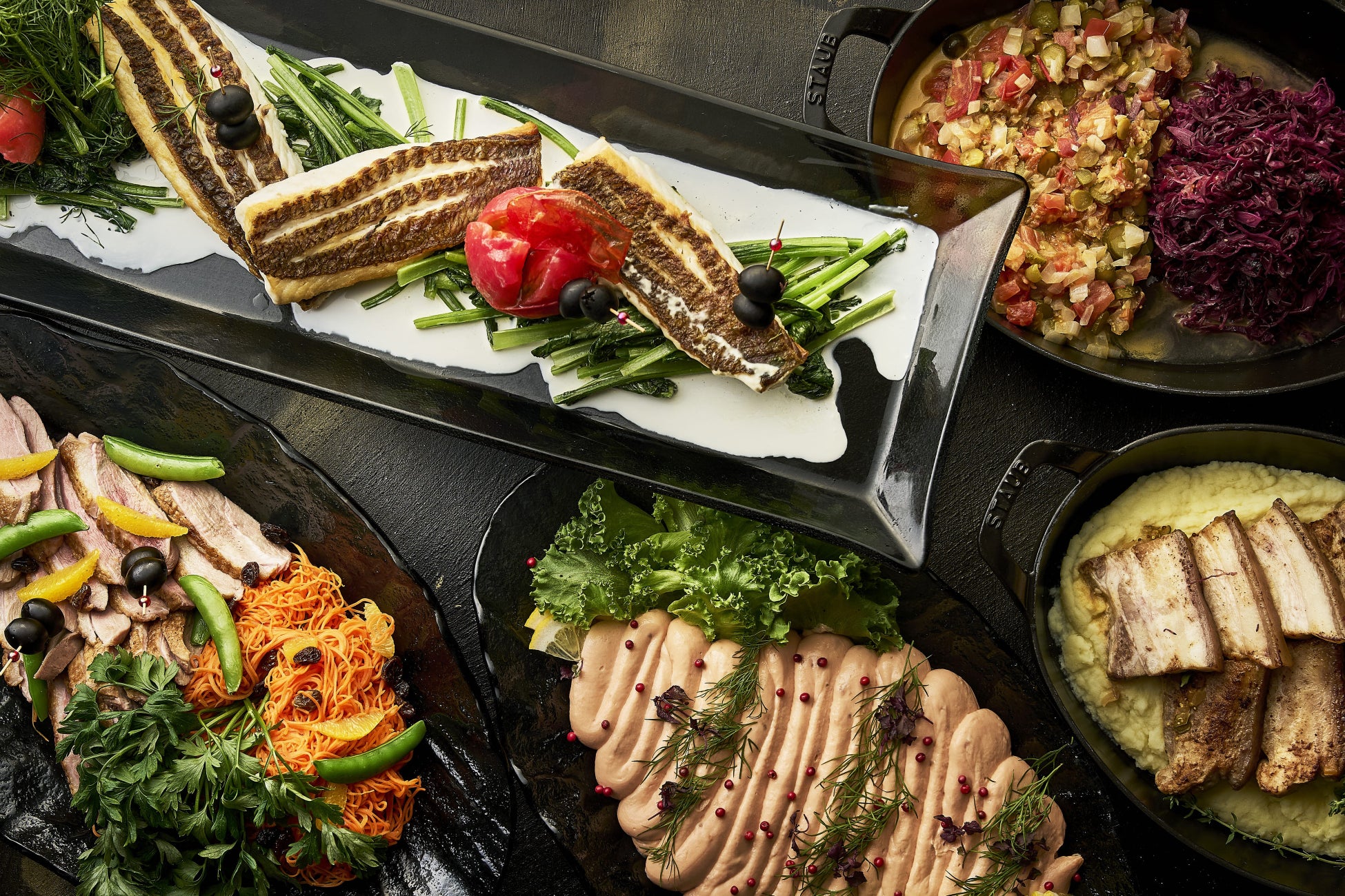 "美食の国"フランスからは、外はカリッと香ばしく焼き上げ身はふっくらとした白身魚に、ほんのり感じる白ワインの酸味とバターのまろやかさが相性抜群のソースをかけた「白身魚のポワレ ブールブランソース」、伝統的なフランス料理の1つで、柔らかく煮込んだ豚肉に濃厚な玉ねぎのソース、滑らかな口どけのマッシュポテトを合わせた「豚のシャルキュティエール」、「鴨のローストとキャロットラペのサラダ」や「スモークサーモンのムース」など、シェフが手間ひまをかけ作る繊細なフランス料理の数々をご堪能いただけます。