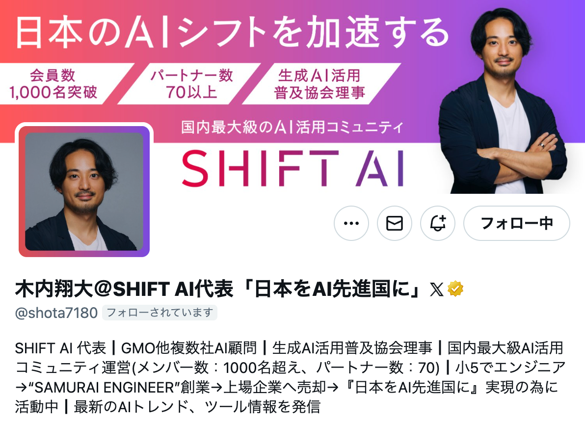株式会社SHIFT AI 代表取締役 / 一般社団法人生成AI活用普及協会 理事 / GMO AI&Web3株式会社 AI活用顧問