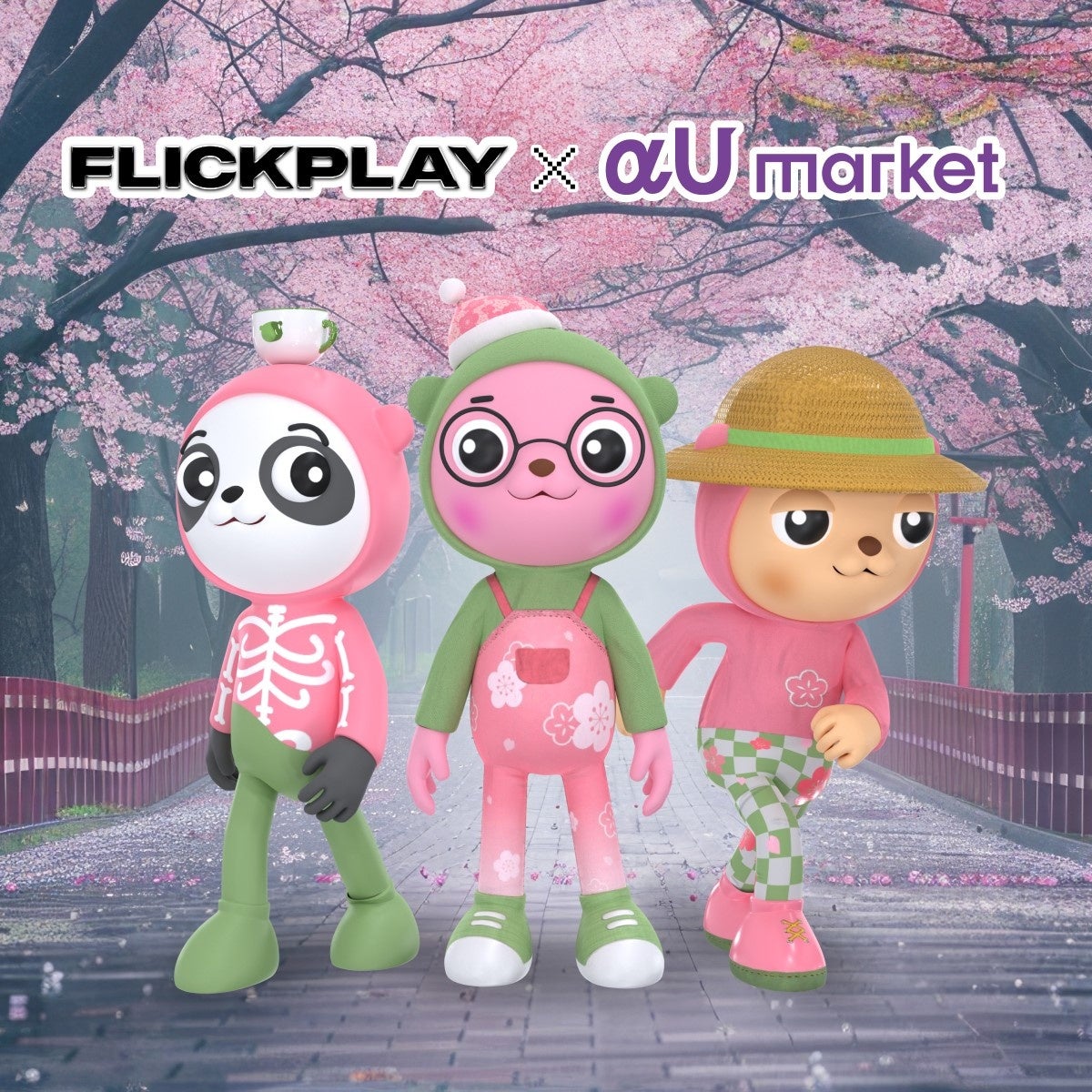KDDIはエンターテインメントプラットフォーム「Flickplay」と提携し、αU marketにおいて「Barely A Bear Sakura Series NFT」を54点販売します。これらのNFTは、「Flickplay」の各プラットフォームで利用可能となり、iOSアプリ内ではAR(拡張現実)機能を利用して、自分のNFTを表示させることで、インタラクティブな体験を楽しんだり、他のユーザーと交流したりすることができます。