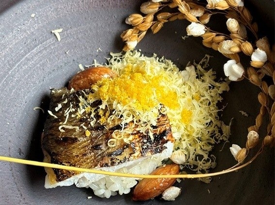 店名に込めたのは「今」という瞬間。すべての料理に薪火の効果を与え、食材の風味が引き立つ刹那に的を絞る。