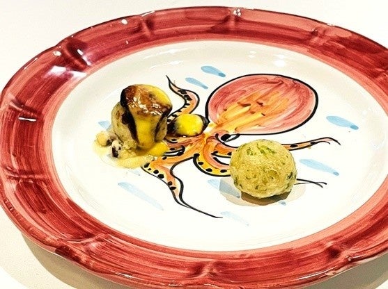 ここならではの料理を創作。「ゼッポレアッラオオサカーノ」はナポリの揚げ生地と、大阪のたこ焼きを合わせる。