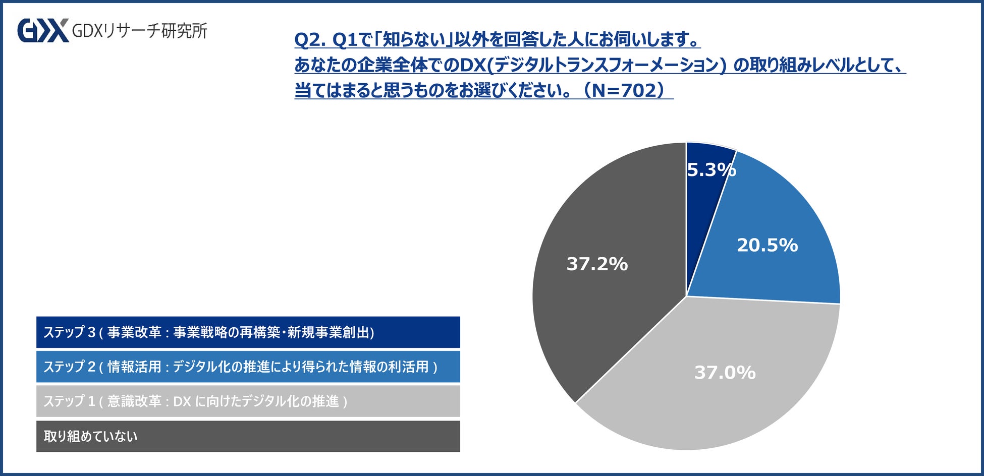 あなたの企業全体でのDX(デジタルトランスフォーメーション) の取り組みレベルとして、当てはまると思うものをお選びください。(N=702)