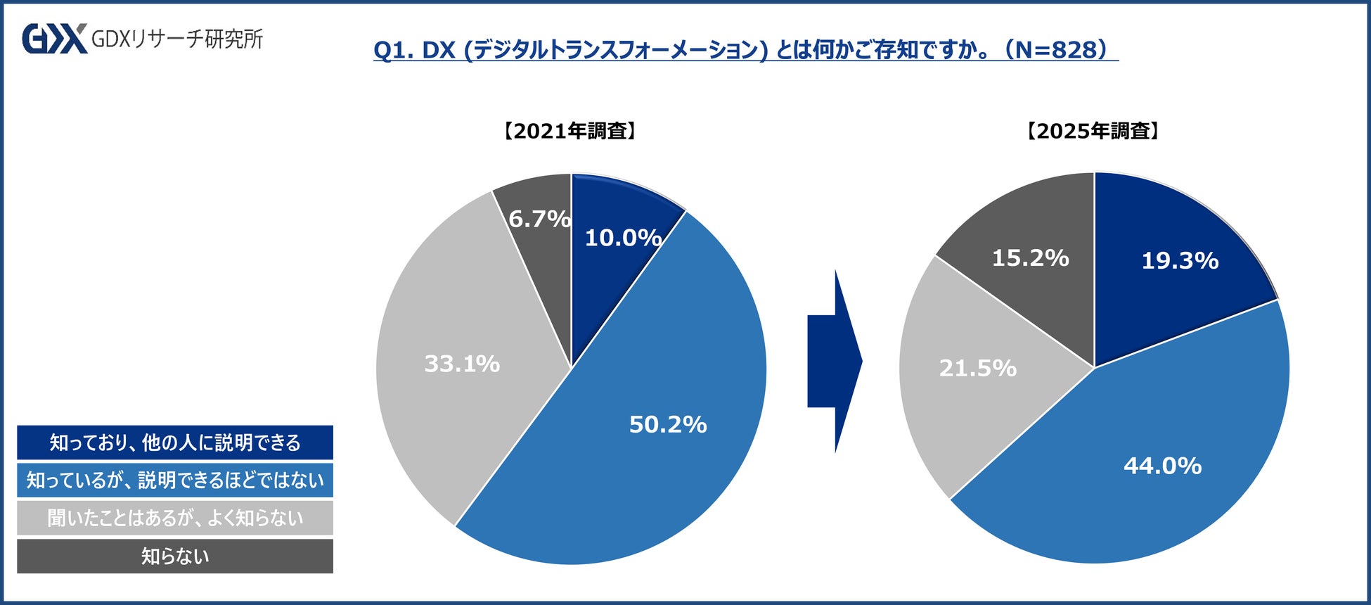 Q1. DX (デジタルトランスフォーメーション) とは何かご存知ですか。(N=828)