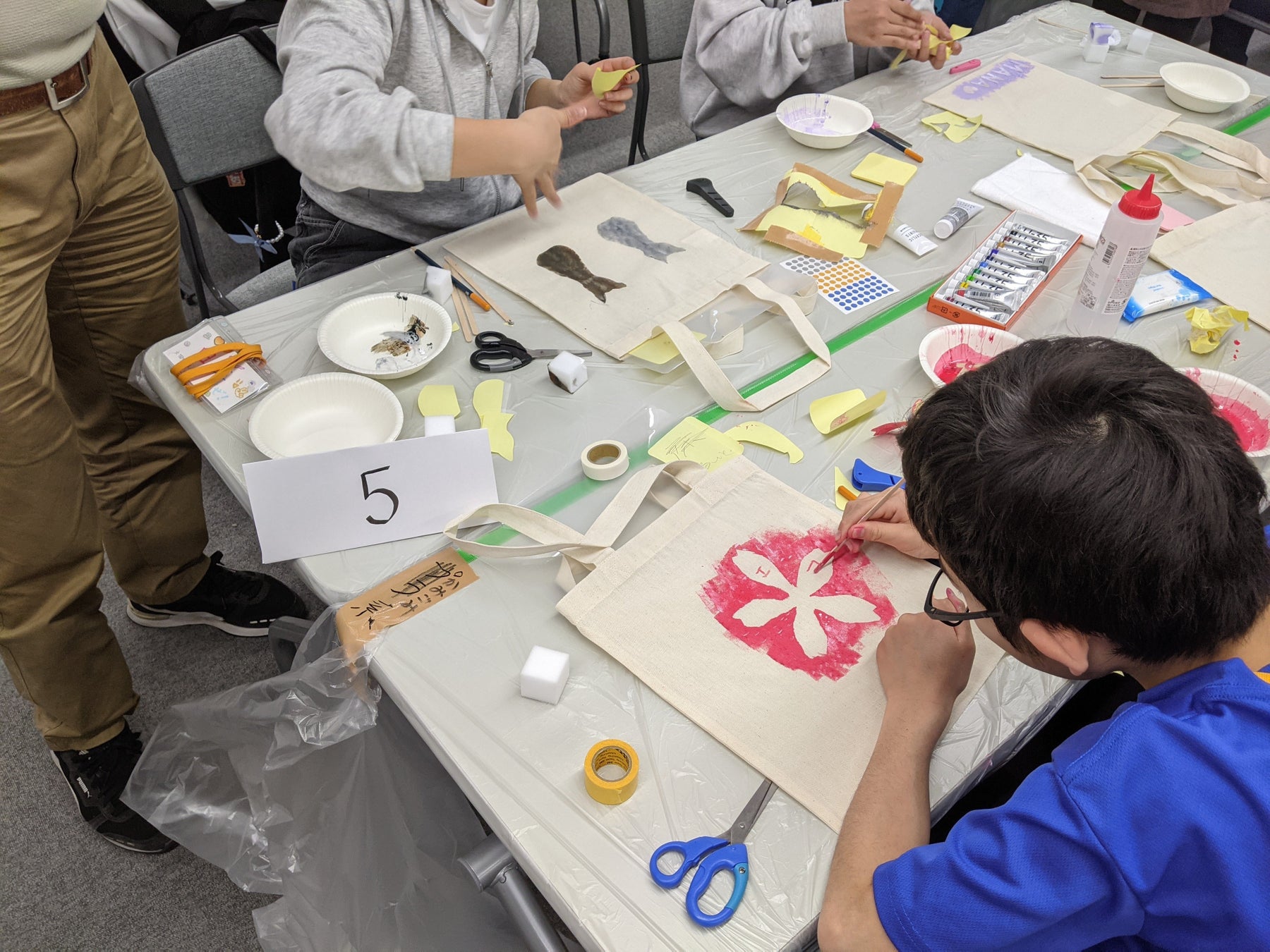 三和タジマ×認定NPO法人キッズドア協働企画「アート教室」“オリジナルスタンプでエコバッグをつくろう”を実施しました(三和タジマ)