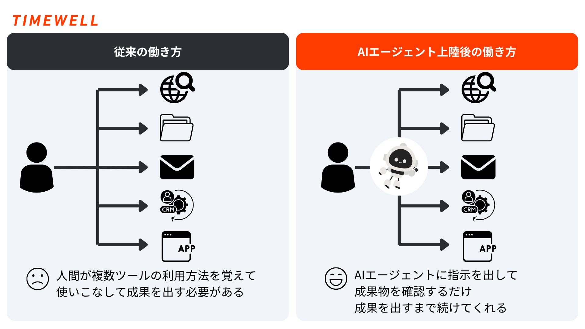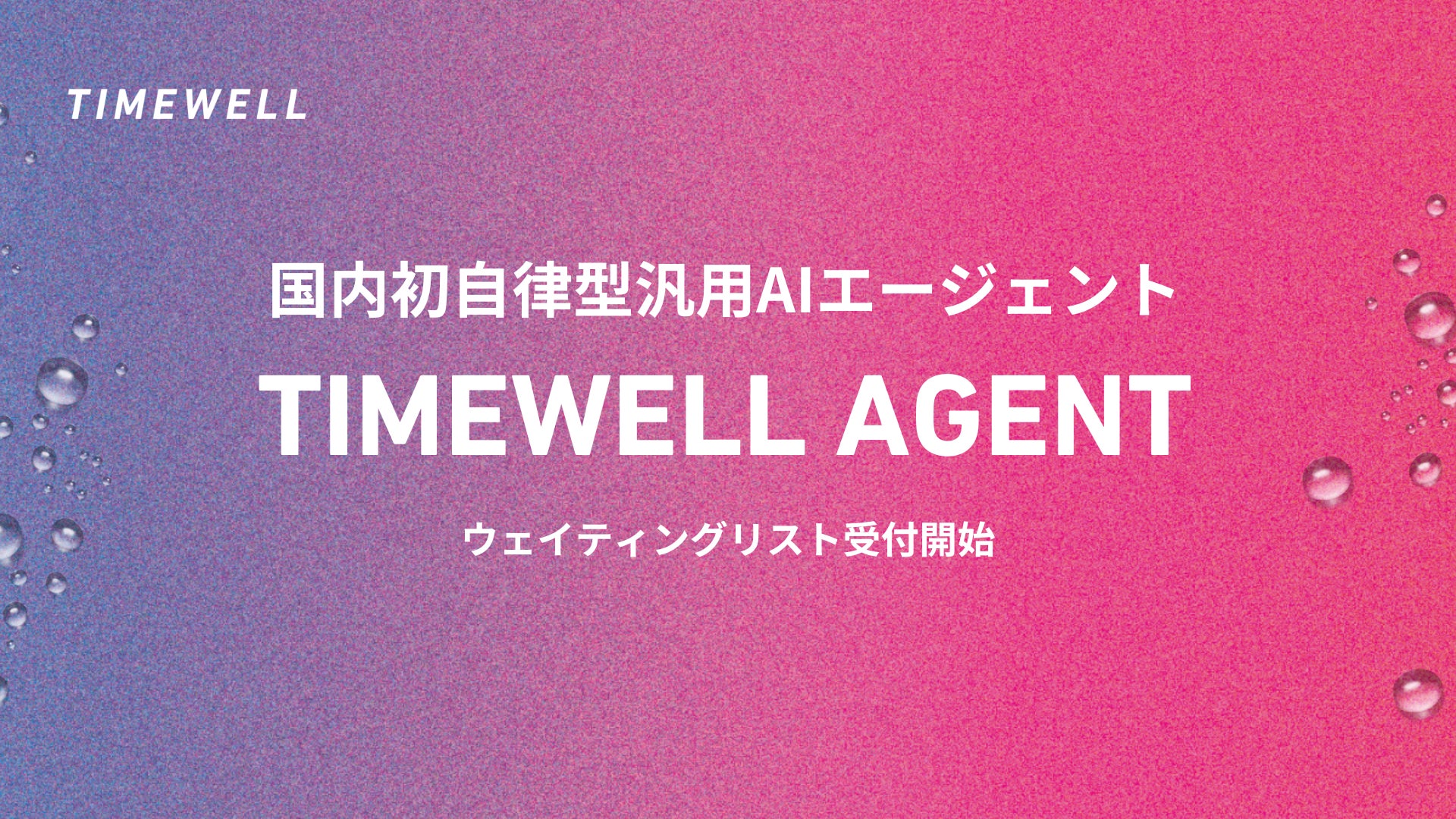 株式会社TIMEWELL(本社:神奈川県横浜市、代表取締役:濱本隆太、以下「TIMEWELL」)は、世界初の自律型AIエージェント「Manus(中国)」の主要特徴に匹敵しつつも安定性とセキュリティを高めた国内初(*1)の自律型AIエージェント「TIMEWELL AGENT(仮称)」を発表しました。このAIエージェントは、高いセキュリティ環境下でユーザーからの指示を待たずに自律的に思考・行動し、タスクが完了するまで止まらずに動き続けることが特徴です。
