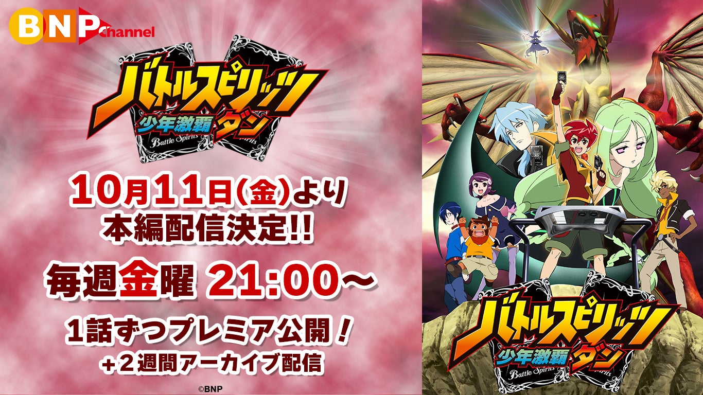 株式会社バンダイナムコピクチャーズ(本社:東京都杉並区、代表取締役社長:佐藤弘幸)は、2009年からのTVアニメ放送開始15周年を記念し、アニメ『バトルスピリッツ 少年激覇ダン』を期間限定無料配信いたします。公式YouTubeチャンネル「BN Picturesチャンネル」にて、10月11日(金)より全50話を毎週金曜日21時から1話ずつプレミア公開、さらに2週間アーカイブ配信いたします。