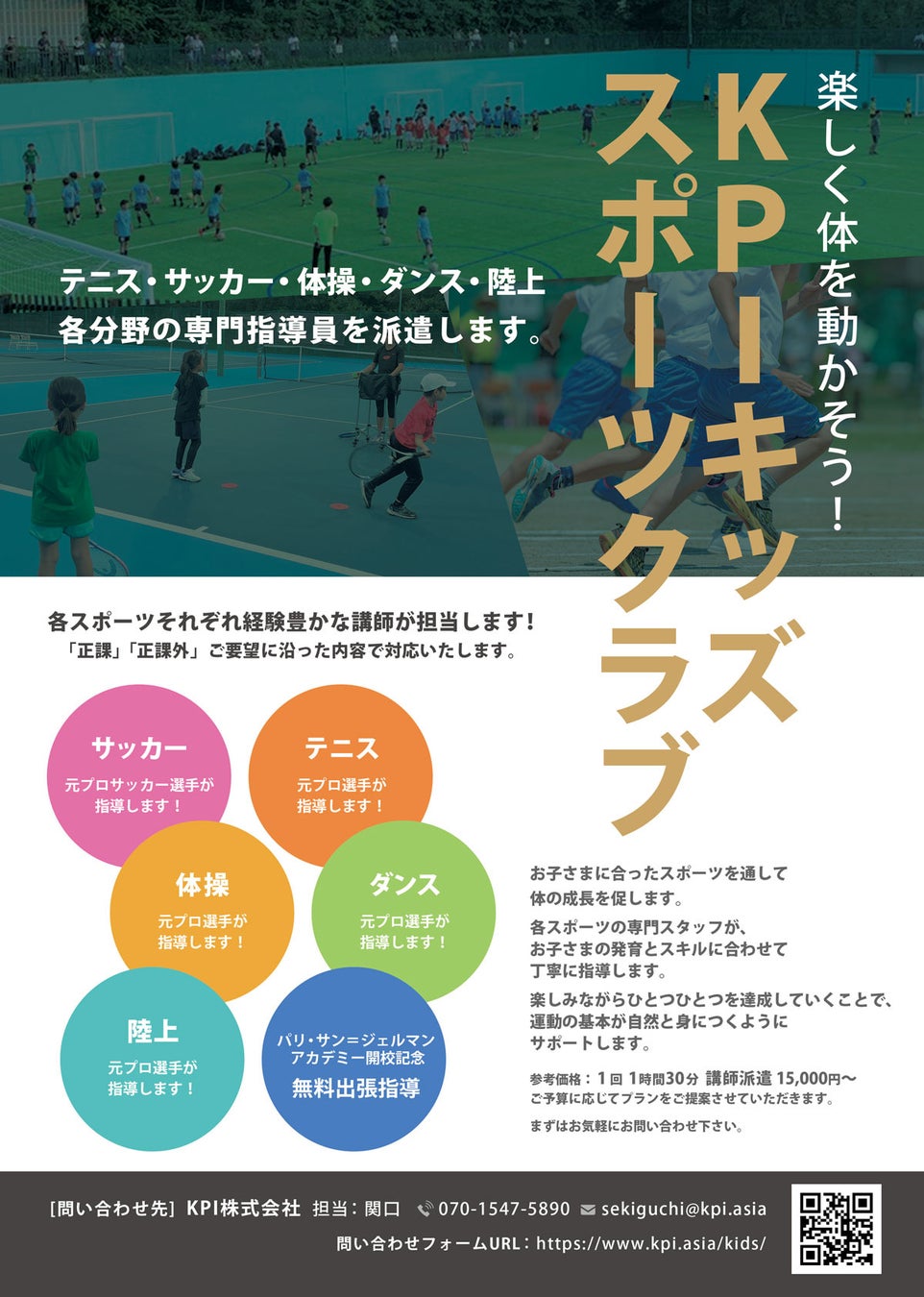 各スポーツの専門指導員がお子様の成長を促す取り組みとして「KPIスポーツクラブ」を2024年6月から受付開始予定です。