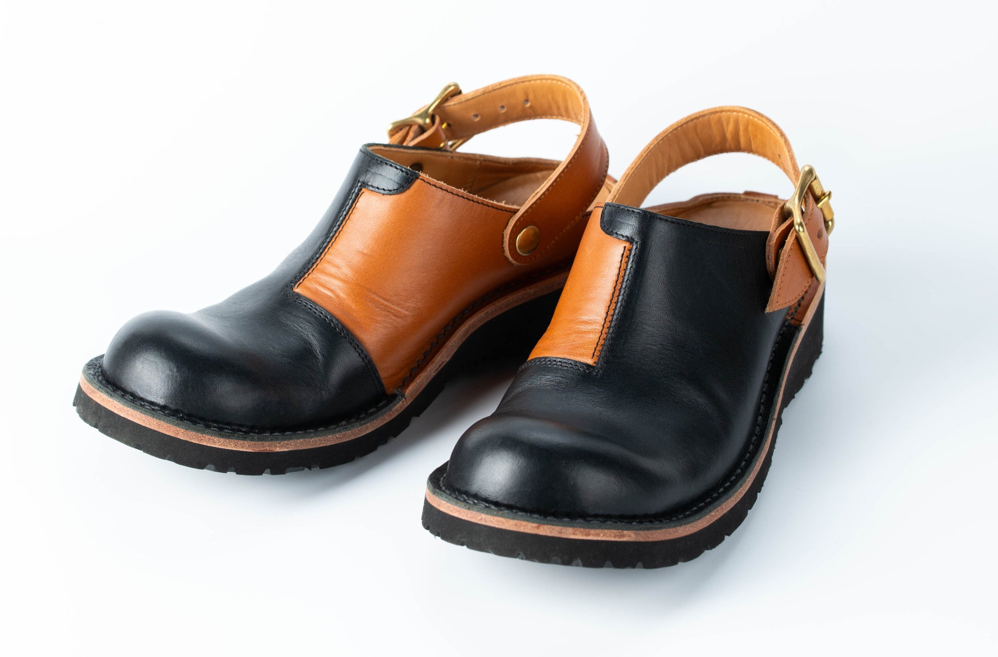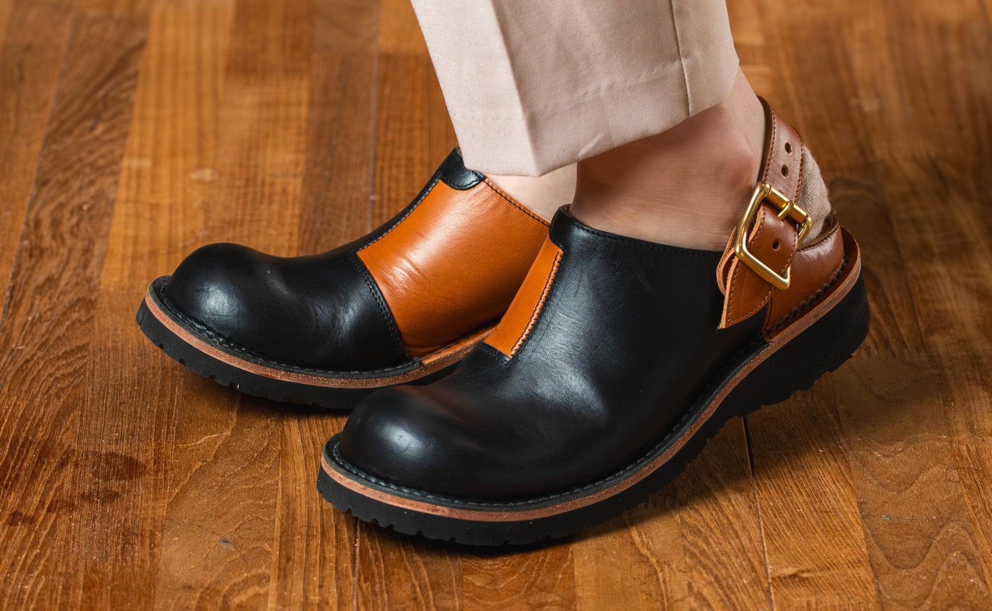 「日常生活から旅行先まで誰でも履ける革靴」をテーマに、様々なコーディネートをイメージしながら、 色合いや配色をじっくり考えてデザインしました。ストラップは可動式なので2way仕様になり、その日の雰囲気や気分によって変えることができます。柔らかにフィットする履き心地と黒×茶のバイカラーで足元をおしゃれに演出してくれる「おでこ靴」に足を入れてみてください。